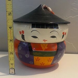 Vintage Japanese 3 pc Lacquer Figural Kokeshi Doll Bento Box Hand Painted