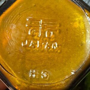 Vintage Japanese Amber & Green Glass Bottles Set Of 2 Decorative Collectibles