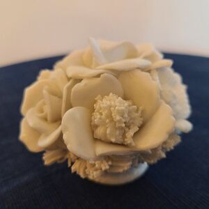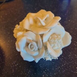 Beautiful, glazed, creamy white flowers of "shaped" porcelain