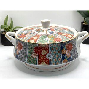 Vintage Japanese Arita Imari Porcelain Tureen With Lid & Handles