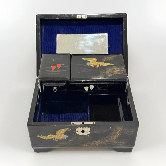 Vintage Japanese Black Enamel Musical Jewelry Box w/ Bronze Inlay โ Beautiful