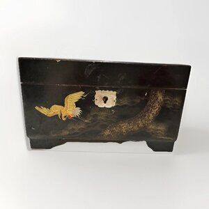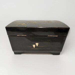 Vintage Japanese Black Enamel Musical Jewelry Box โ Bronze Inlay โ Beautiful & Rare