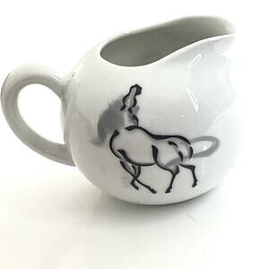 Vintage Japanese Black Horse Painted CREAM PITCHER Tea Server Creamer Signed