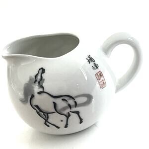 Vintage Japanese Black Horse Painted CREAM PITCHER Tea Server Creamer Signed-NEW Condition!