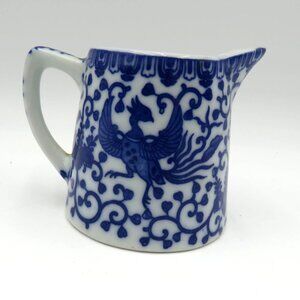 Vintage Japanese Blue White 2.5" Ceramic Creamer Pitcher Phoenix Design