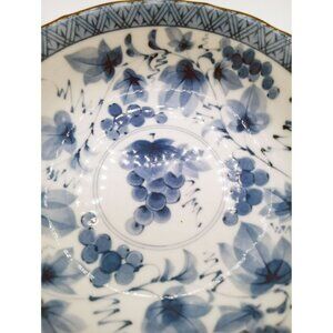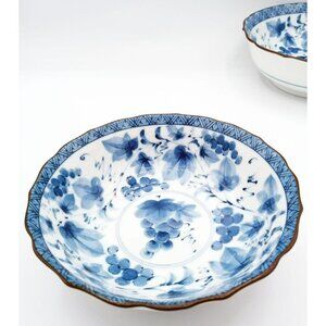 Vintage Japanese Blue White Porcelain Bowls Grapevine Scalloped Rim Set of 2