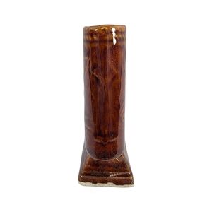 Vintage small ceramic bud vase from Japan. Brown glaze with charming relief design, base stamped “Japan.” Measures about 3″ tall × 2.75″ wide. Very good condition with normal age wear. Perfect for shelf or desk styling. Offers welcome!