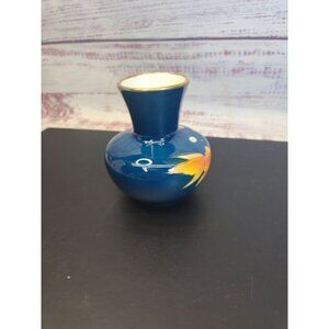 Vintage Japanese Bud vase Goldfish cobalt blue hand painted fish
