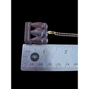 Vintage Japanese Carved Wood Wise Monkey Pendant Necklace