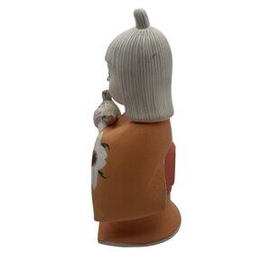 Vintage Japanese Ceramic Figurine Girl In Kimono Holding Bird Hand-Painted