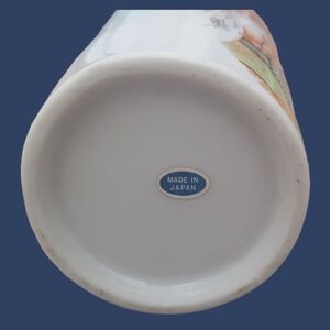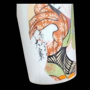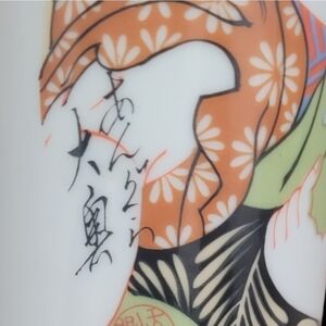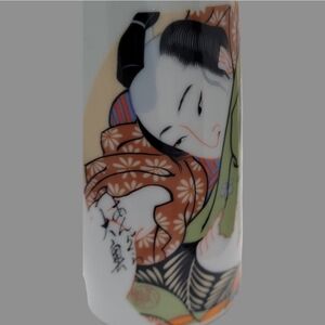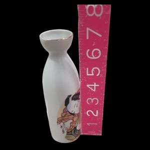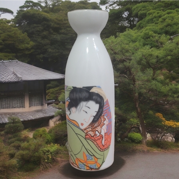 Get your Asian inspiration on with this Vintage Japanese Procelain Sake Bottle/Pitcher. This one is titled "The Lovers is a very rare piece. This white -bottle/pitcher with gold painted rim features colorful artwork signed by the artist. It stands 7"H. No nicks or cracks. Be sure to add this one to your collection. Gently pre-loved from a smoke/pet free home. ***Free surprise Artisan gift with purchase. I'm also selling this item on other platforms