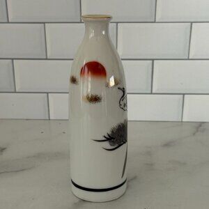 Vintage Japanese Ceramic Vase W/ Crane & Sun Design Made In Japan Gold Rim Accen