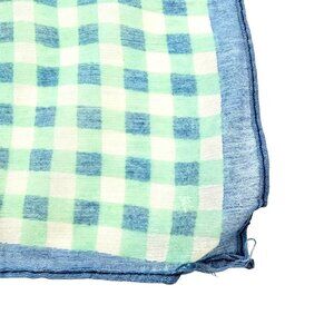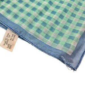 Vintage Japanese Checkered Scarf Rayon/Nylon Blue Green 20" JJ3798