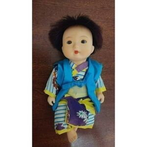 Vintage Japanese Dolls. They are in good vintage condition with some signs of use. The girl has a blue spot on her nose and the boy has a spot on the front of his clothes. See pictures for condition. They are both dressed in Kimono's and are both stamped "Japan" on their left leg. Approximately 7in tall.
