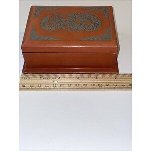 Vintage Japanese Dragon Trinket Jewelry Box Red Lacquer Bamboo MCM Read EL5