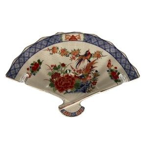 Vintage Japanese Fan Dish - 1980s Imari Style Japanese Fan Dish Made in Japan 10" x 6.5" x 1"