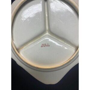 This vintage divided plate could be used for any number of things. It would be handy on a vintage vanity to catch jewelry, but originally it might have been used for relishes or nuts and candy. It was made in Japan and showcases delicate floral designs. Its elegant porcelain construction adds a touch of timeless charm to any table setting.