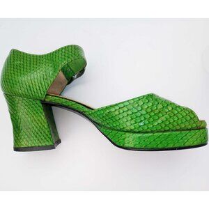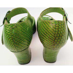 Vintage Japanese Ginza/Tokyo Green Snakeskin Leather Block Heel Sandals Sz 5.5