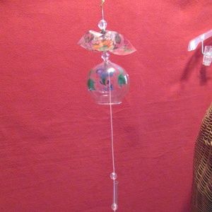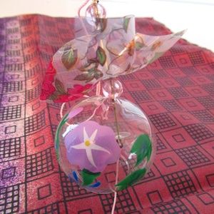 Vintage Japanese glass wind chime, pinwheel on top, glass ball hand painted