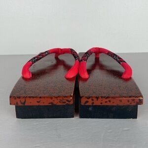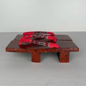 Vintage Japanese Kimono Geta Wooden Sandals Pink Artsy Rare 9" X 3" X 1.5 Tall
