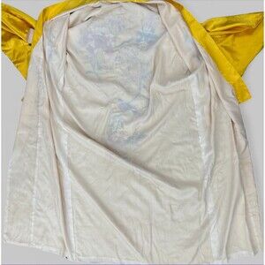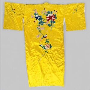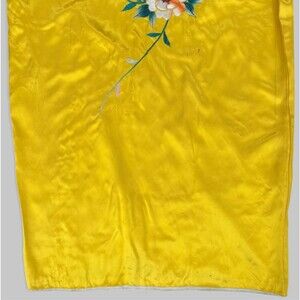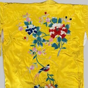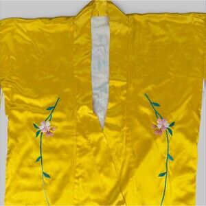Vintage Japanese Kimono Yellow Gold Silk Satin Embroidered Peony Kosode Robe