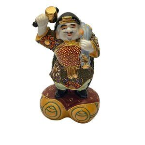 Vintage Japanese Kutani Figurine Man on Kegs 1960s Porcelain