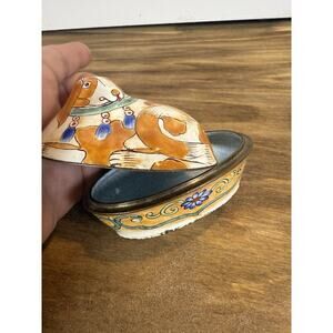 ✨Vintage ✨Japanese Kutani Porcelain Dog Figurine Lidded Trinket Box Hand Painted