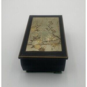 Vintage Japanese Lacquer Music Jewelry Box With Floral Design Red Velvet Lining