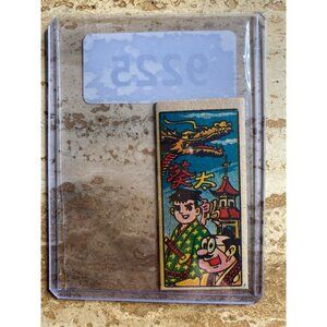This vintage Japanese matchbox label features a vibrant illustration of a dragon along with cartoon characters. Crafted with intricate details, it reflects a piece of cultural history. Collectors of ephemera and enthusiasts of vintage Japanese art will appreciate the colorful design and symbolic elements.