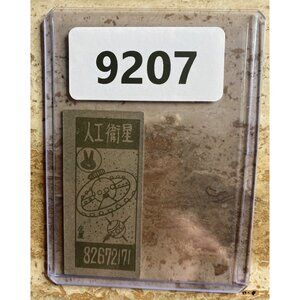 This vintage Japanese Menko trading card showcases a striking design featuring a colorful skull character alongside a rocket. The card's unique artwork and historical significance make it a collector's piece, reflecting a nostalgic era in Japanese pop culture. The card is preserved in a protective sleeve, emphasizing its value.