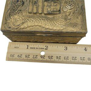 Vintage Japanese Metal Dragon Embossed Cigarette Box Wooden Interior Bronze Clr