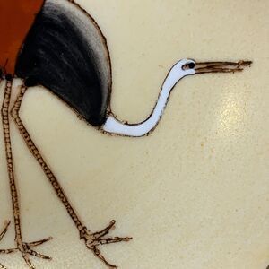 Vintage Japanese Porcelain Bowl Stork Print ACF Decorated Made in Hong Kong 6"