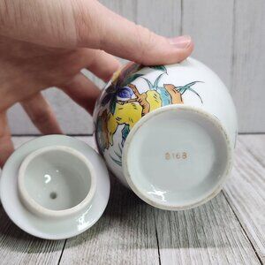 This Vintage Japanese Porcelain Ginger Jar, adorned with a beautiful floral design, comes with a lid and stands at '' tall. Perfect for adding a touch of classic elegance to any room.