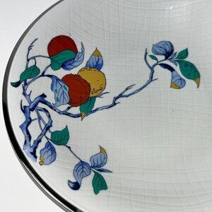 Vintage Japanese Porcelain Serving Bowl 10" Fruit and Branch Silver Rim Texture
