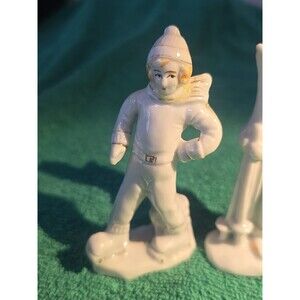 Vintage Japanese Porcelain Skier Figurines 4.5in. Tall, Set Of 2