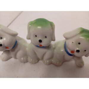 Vintage Japanese Pottery Poppies Poppy Dog Trio Ceramic Figurine
