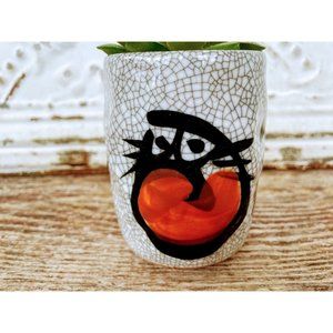 Here for your consideration is a nice vintage Japanese Raku crackle glaze cup. It measures about 4" tall and 3" is diameter across the top. It has no chips or cracks and is in good vintage condition.