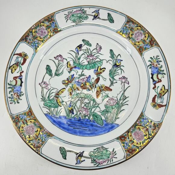 Vintage Japanese Rose Medallion Hand Painted Butterfly Moth Plate