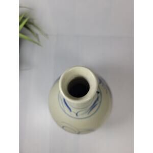 Vintage Japanese Sake Tokkuri, Pottery Bottle Gray Blue Bamboo