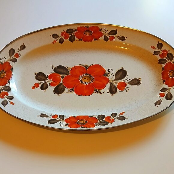 Vintage Japanese Sanko Ware Speckled Platter GUC. Normal minimal wear See photos. Creams, browns and oranges.