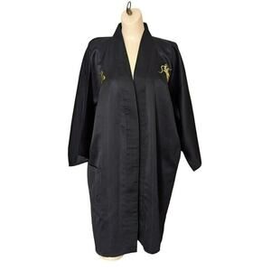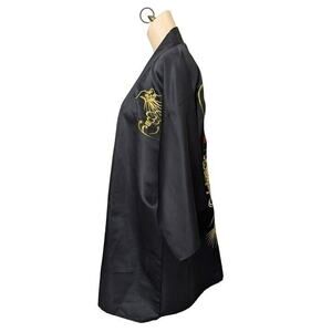 Vintage Japanese Satin Haori Kimono Jacket Unisex XXL Embroidery Dragon Boho