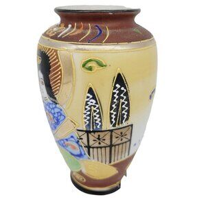 Vintage Japanese Satsuma Moriage 5" Porcelain Vase Hand Painted Raised Design