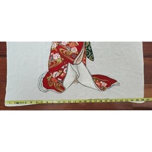 Vintage Japanese Scarf Geisha Kimono Art Print Red Gold Ivory Japan Size 28x 26