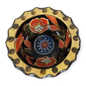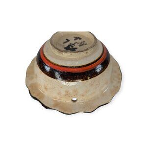 Vintage Japanese Stoneware Bowl w/ 3 Holes Noodle Bowl Ripple Rim