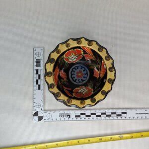 Vintage Japanese stoneware bowl with 3 holes, possibly a noodle bowl.