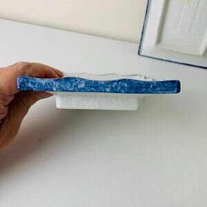 These gorgeous vintage Japanese sushi/sashimi plates feature a beautiful gray and white footed base with a blue and brown floral design and brown edges. They measure approximately 7.75" L x 5.5"W and are in excellent pre-owned condition with no chips or cracks