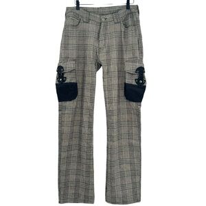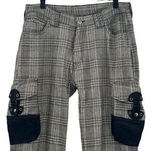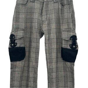 Vintage Japanese Tete Homme Plaid Cargo Pants Wool Blend Gray Black | 30" x 32"