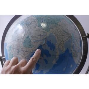 Vintage Japanese World Globe, Post World War II period, 20 inches high, FLAW