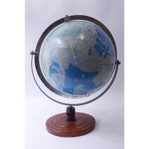 Step back in time with this vintage Japanese world globe, dating from the post-World War II era. Standing at 20 inches high, it’s a stunning blend of history and geography, offering a unique glimpse into the world as it was. Ideal for collectors, educators, or anyone with an appreciation for vintage artifacts, this globe is perfect for display in your home or office. Its classic design and detailed craftsmanship make it not only a functional piece but also a beautiful collectible that tells a story.