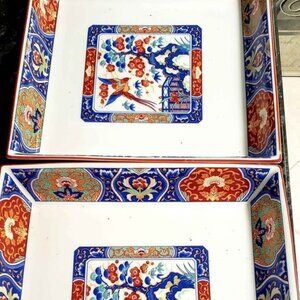 2 Vintage square serving pieces from Japan. The colors are vibrant and beautiful . The center art depicts a bird, tree and bridge. The square bowl measures 11 inches. Both bowls are in perfect condition. There ae no chips or cracks. price is for each piece